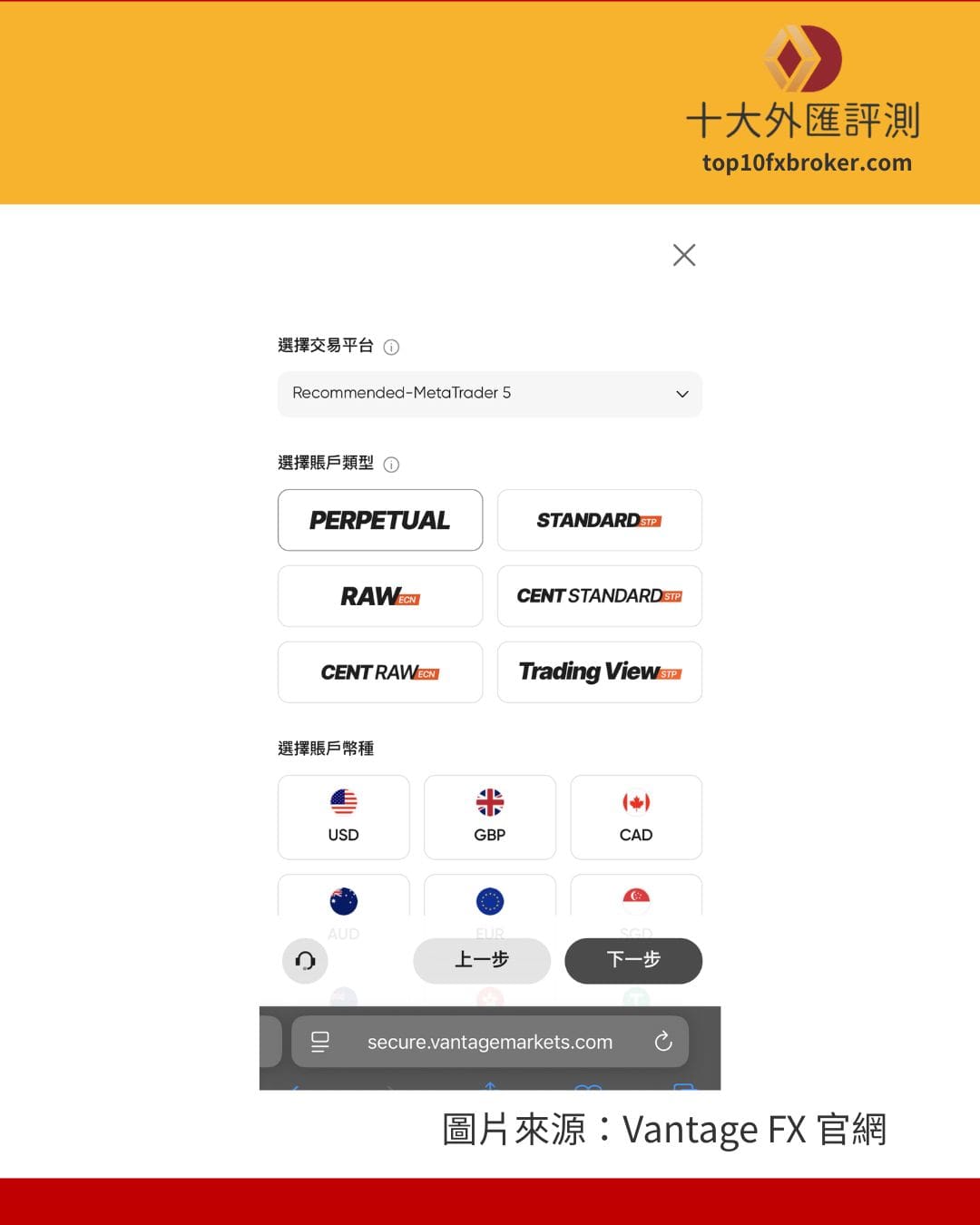 Vantage 提供多種帳戶方案可選,包括標準帳戶、RAW ECN、PRO ECN 等共六種,依照你的交易需求挑選最合適的即可。