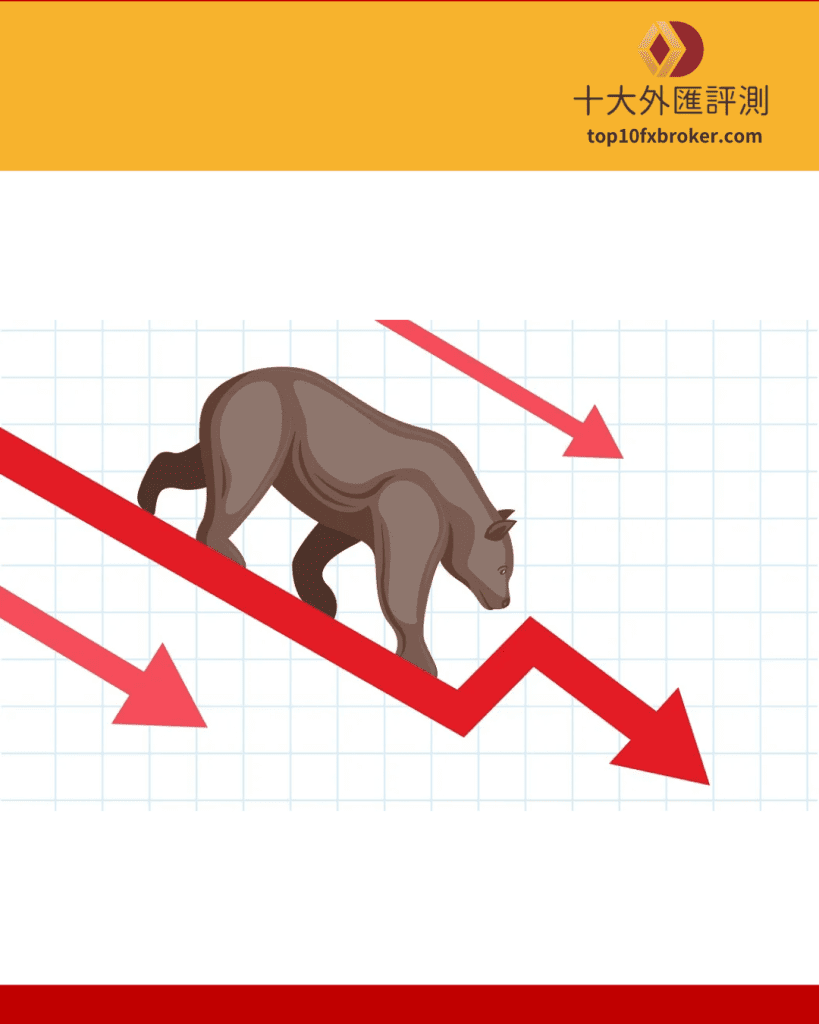 再來,換到讓人心驚驚的「熊市」(空頭市場)。這時候市場氣氛低迷,股價像溜滑梯一樣往下掉,而且都在移動平均線之下,均線也跟著向下彎腰。